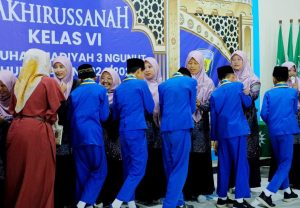 Acara ditutup dengan momen perpisahan antara siswa-siswi kelas 6 dan para guru melalui jabat tangan penuh kehangatan. Rasa bahagia, haru, dan bangga begitu terasa, menjadi penutup yang manis untuk perjalanan para siswa di MI Muhammadiyah 3 PRIMA Ngunut.