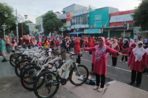 Momen Antusias Peserta Mengikuti Senam Massal di Jalan Hos Cokroaminoto.
