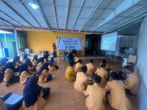 Peserta diajak langsung mempraktikkan menulis singkat tentang kegiatan mereka hari itu, sehingga suasana kelas berubah menjadi mini newsroom penuh semangat.